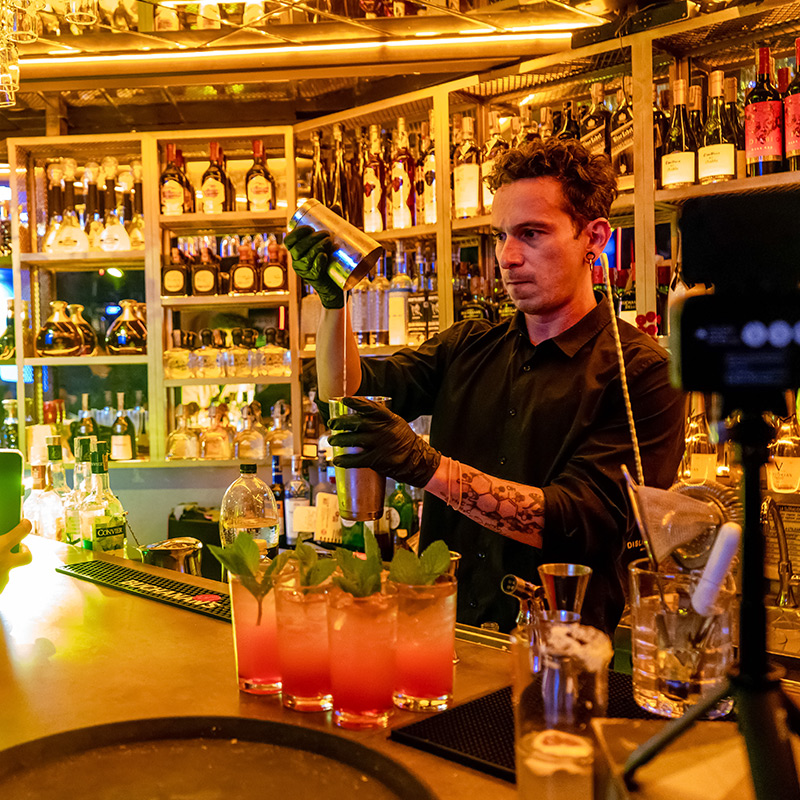 Experiencias gastronómicas de autor, mixología y estaciones temáticas.